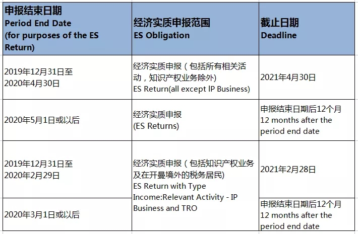 關于提交經濟實質申報表(ES  Return)的截止日期總結如下:
